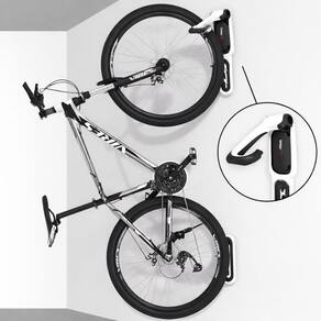 Indicado para bicicletas de até 16 kg, possibilita deixá-las totalmente suspensas na parede. Para modelos acima de 16 kg, recomenda-se manter a roda traseira apoiada no chão e fixar a roda ao suporte com fita dupla face.