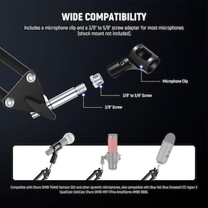 IMPORTANTE: Se for um produto elétrico, ele pode ser compatível com uma tomada de 110 volts. Se utilizado fora dos Estados Unidos, pode ser necessário um conversor de voltagem para garantir a operação adequada. Verifique se o produto que você está comprando é elétrico antes de considerar essas informações. Suporte de braço de microfone NEEWER, tesoura suspensa Boom Mic Arm, suporte de mesa com clipe e adaptador de 3/8" a 5/8" compatível com Blue Yeti Snowball HyperX QuadCast SoloCast Shure, carga máxima de 3,3 libras, MS006