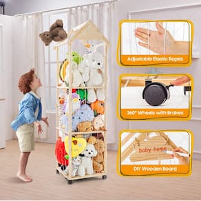Gaiola tufada de madeira para armazenamento de zoológicos - Capacidade extra grande e economia de espaço: tamanho 140 x 40 cm x 40 cm, pode ser colocado em qualquer canto da sala, zoológico de armazenamento de brinquedos de pelúcia, seja uma boneca pequena ou um grande bicho de pelúcia, esta tela de armazenamento de brinquedos de madeira maciça elimina a bagunça e também economiza espaço. Pode ser utilizado na sala de estar, quarto e varanda! - TRABALHO DE ALTA QUALIDADE: Em comparação com material plástico, este armazenamento de zoológico de brinquedo é feito de madeira maciça de alta qualidade em cor livre de contaminantes, natural, seguro, leve, ecológico e adequado para crianças. A barra transversal na parte inferior protege os animais de pelúcia na parte inferior da umidade e poeira. - Fácil de montar: o cordão elástico é pré-inserido no tubo com cabos elásticos ao redor para espremer o armazenamento, design simples expande a capacidade, vem com instruções de instalação, parafusos e plugues para montagem na parede, rápido e fácil de instalar. - Rack de armazenamento de animais de pelúcia: tem uma grande coleção de bichos de pelúcia? Não se preocupe! Três camadas podem conter vários tamanhos de brinquedos de pelúcia, adequados para resolver o problema de brinquedos no quarto e na sala de jogos, mantendo o quarto arrumado; quatro cordões elásticos de cada lado facilitam pegar e colocar os brinquedos, evitando que os pequenos brinquedos caiam! - Faça você mesmo seu próprio zoológico de animais: placa oval de madeira para fazer você mesmo o nome do seu zoológico! A caixa de armazenamento de brinquedos de pelúcia em forma de casa pode conter todos os tamanhos de brinquedos de pelúcia, fazendo as crianças adorarem organizar brinquedos e economizar espaço no quarto das crianças. Problema pós-venda: se você tiver alguma dúvida ou sugestão sobre nossos produtos, sinta-se à vontade para entrar em contato conosco!