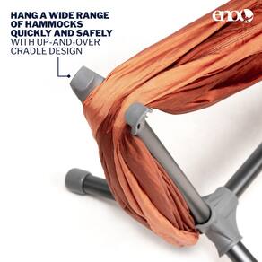 Construído para portabilidade máxima, o suporte para cadeira de rede Parklite converte rapidamente sua rede em uma experiência de descanso sentada como nenhuma outra. Se você estiver saindo perto de casa ou em uma aventura, nunca foi tão fácil desfrutar do relaxamento leve que apenas uma rede pode oferecer. - Converta rapidamente sua rede portátil em uma cadeira de rede leve e independente, sem necessidade de apertos, montagem rápida e fácil de embalar, alça de rede integrada com 8 pontos de ajuste combinados para ajustar seu conforto, moldura de alumínio anodizado premium construída para todas as estações, uso em todos os climas, pés de plástico durável protegem o suporte e são seguros para uso em todas as superfícies, inclui estojo de transporte personalizado para viagens e armazenamento prontos para aventuras - Desfrute de relaxamento leve - Combina perfeitamente com as redes mais vendidas ENO DoubleNest, SingleNest e TravelNest - Personalize seu conforto - A alça de rede integrada possui 8 pontos de ajuste combinados para ajustar sua experiência de assento - Compatível com todas as redes ENO (não incluindo redes JungleNest, DayLoft, Sky Series ou SuperNest) - * Universalmente compatível com redes reunidas de até 25 cm (mosquetões necessários)