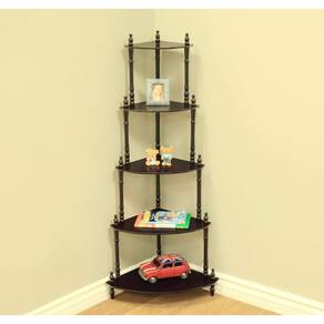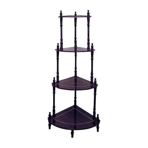 - Use como mesa de canto ou mesa de cabeceira. Madeira e madeira composta com um rico acabamento em cerejeira. Características O estilo tradicional faz com que esta prateleira de madeira pareça uma herança de família; use as 4 prateleiras para guardar itens decorativos, livros, jogos de salão e muito mais; todas as peças são feitas de madeira composta com acabamento em cerejeira escura; é necessária alguma montagem;