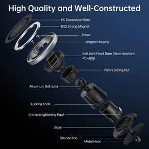 -?Equilíbrio magnético ideal?Equipado com uma central elétrica de 16 ímãs de neodímio de grau N52, nosso conjunto magnético MagSafe passou por testes rigorosos e ajustes finos para atingir a força magnética ideal. Independentemente das condições da estrada, seu telefone permanece firme no lugar. A força magnética atinge até 12N (1,2 kg) para a série iPhone13-15, 15N (1,5 kg) para capas de telefone equipadas com MagSafe e 25N (2,5 kg) para anéis de metal. Nota: para a série iPhone 11-12, use capas Magsafe ou anéis de metal.