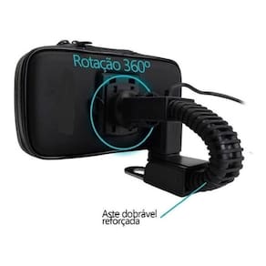 - com armação giratória 360 - case impermeável com fechamento em zíper duplo. - fixação no retrovisor - alta durabilidade - carregador usb - articulável resistente - plástico de alta durabilidade; - ajustável em várias posições rotação 360 ; - película transparente; - resistente contra chuvas, não pode ser submerso na água; - alça de segurança na capa que deve ser fixada, para ser um backup e evitar a queda do celular em caso de quebra do suporte; - haste flexível de aprox. 19,5 cm de comprimento; - fixação na base do retrovisor; - entrada usb 5v 2a alimentação 12v/ 24v ; - tampa impermeável; - comprimento aprox. Do cabo: 60 cm.
