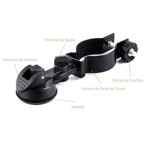 O suporte de ventosa para segurar celulares grandes e tablets. O diâmetro de encaixe do telescópio é de 2 - 2,5 inches. O encaixe pode ser ajustado de acordo com a situação. O adaptador é leve, durável e compacto, de alta qualidade e pode ser utilizado por muito tempo. Contém espumas protetoras para proteção de seu telescópio, binóculos ou luneta. Tem função antiderrapante, para que o adaptador seja mais estável. Ângulo giratório de 180º