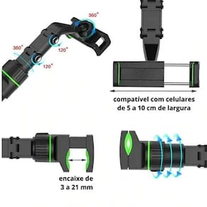 Suporte com Ângulo ajustável, rotação 360 para ajustar o seu melhor ângulo de visão e deixar você mais confortável ao dirigir, prenda em qualquer lugar e você pode ajustar a largura como você pretender ou achar melhor.
