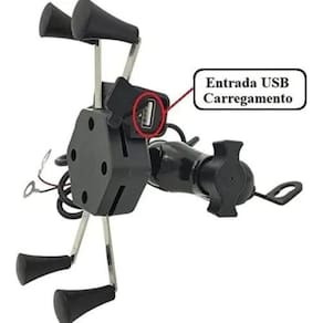 Universal para motos com retrovisor rosca 8 ou 10mm.Universal para motos com parafuso da mesa do guidão rosca 8 ou 10mm.Descrição:Produto elaborado com material de alta qualidade, testado e aprovado dentro das normas de segurança.Acompanha na embalagem:1 suporte celular ou gps.1 borracha fixação.2 selos fixação.2 borrachas reservas.Instalação:Com ajuste manualmente para o tamanho exato de seu celular ou dispositivo gps, este produto é de fácil instalação, não exige que mude a estrutura de sua moto, pois foi confeccionado seguindo as especificações que permita uma melhor qualidade.Vantagem:Com usb você pode carregar seu celular e seu dispositivo gps, com uma borracha para melhor fixação para mais segurança e firmeza para a sua moto.Descrição técnicas:Cor: preto.Matéria-prima: borrachaMedidas: para celulares e gps com 3.5 á 6 polegadas.Voltagem padrão de entrada: 12v - 30v.Compatível: 12v / 24v.Voltagem de saída: 5v.Corrente de saída: 2a Marca: Suporte Moto C/ Usb