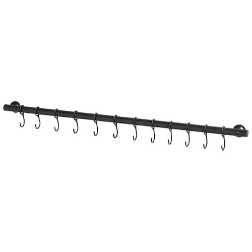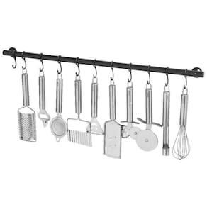 Organize seus talheres de forma prática e com estilo otimizando espaço podendo pendurar até 6 itens, ideal para seus utensílios domésticos, xícaras, talheres ou louças, deixando sua bancada sempre livre e organizada, podendo ser utilizado também em outros ambientes, como garagem e área de serviço. Lindo acabamento preto fosco que irá valorizar o ambiente de sua casa. É de fácil instalação pois já vem com parafusos e buchas
