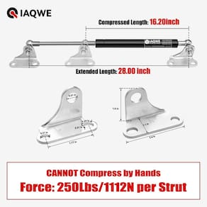 Suporte hidráulico para caixote do lixo kit de reboque amortecedor de choque porta de escotilha braço hidráulico capô de braço hidráulico kit de elevação de cama de trailer motor elétrico choque de elevação de 71 cm viagem - [Parâmetro dos amortecedores a gás]: Força: 113 kg/1112N 71 cm por suporte, comprimento estendido: 71 cm, comprimento comprimido: 41 cm. Tamanho dos orifícios do suporte: 8 mm (diâmetro), 8 mm (diâmetro), 10 mm x 8 mm (C x L) Muito forte! Não pode comprimir diretamente pelas suas mãos - [ampla variedade de aplicações]: adequado para cama queen trailer, armazenamento de trailer, porta de armário de trailer, escotilha de chão, tampa de caixa de ferramentas, capa de dossel de caminhão, capa de tonneau, rampa de trailer de viagem, carcaça de trailer, janela de bar, galinheiro, serviço pesado, armário grande, banco externo, licitação de lixo e assim por diante. ansioso por suas criações de bricolage - [Amortecedores a gás de 113 kg]: o pacote inclui escoras * 2 com suportes tipo L * 4, guia de instalação* 1, pode manter a porta da tampa em 90-150 graus, Âmbito de aplicação: 90-124 kg - [Suporte a gás premium de 71 cm]: nossos produtos são adequados para vários ambientes climáticos adversos, como chuva forte ao ar livre e menos 40 °C. Como o melhor e confiável fabricante de molas a gás, a IAQWE sempre estará atrás de você para fornecer um suporte mais forte. - [Suporte forte do suporte a gás]: Suporte de substituição de 12 meses. Qualquer problema, envie-nos um e-mail via Amazon e resolveremos para você dentro de 24 horas.
