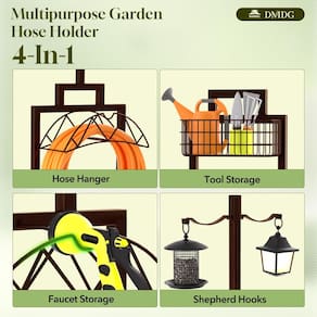 - Vem com rack de armazenamento de ferramentas e gancho de pastor: um suporte de mangueira de jardim pode não apenas armazenar DMDG mangueira, mas também o cesto de armazenamento pode armazenar luvas, pulverizadores várias ferramentas de jardinagem, mantendo a área limpa e organizada. O gancho de pastor para armazenamento de mangueira de jardim pode ser utilizado para pendurar decorações como plantas, lâmpadas, alimentadores de pássaros ou sinos de vento para adicionar interesse e beleza ao jardim