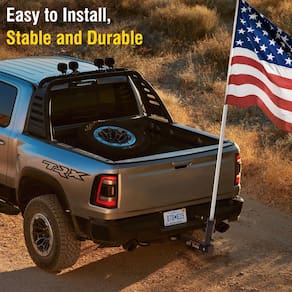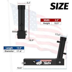 Suporte de mastro de bandeira de engate, suporte de mastro de bandeira resistente para engate de 4 cm, 2 modelos (furo único e furo duplo com design), suporte de bandeira para jipe, caminhão, SUV, trailer, campista - Construção resistente: Feito de materiais duráveis, totalmente metálicos, este suporte de mastro de engate garante força e estabilidade para uso duradouro, mesmo em condições climáticas adversas. - Serve para engate padrão de 4 cm: compatível com qualquer engate de reboque de 4 cm, tornando-o ideal para usuários de Jeep, caminhão, SUV, RV e campista que desejam exibir suas bandeiras com segurança em qualquer lugar. - Opções de modelo duplo: escolha entre o modelo de orifício único ou o suporte de mastro de bandeira de furo duplo, que apresenta um design exclusivo com a bandeira americana entre os dois furos. - Fácil instalação: Este suporte de mastro de bandeira é montado sem esforço no seu de engate, sem necessidade de ferramentas especiais, tornando a exibição da bandeira rápida e conveniente. - Perfeito para entusiastas de atividades ao ar livre: se você estiver viajando, acampando ou desfilando, este suporte de bandeira de engate oferece uma maneira confiável de mostrar seu orgulho onde quer que você esteja. - Revestimento resistente à ferrugem: o suporte de mastro de bandeira todo em metal vem com um revestimento resistente às intempéries para evitar ferrugem, garantindo que o suporte da bandeira permaneça em perfeitas condições.