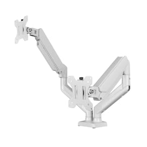 O suporte de mesa Ergo Flexy branco com pistão a gás é perfeito para gamers que utilizam dois monitores e buscam máxima ergonomia, estilo e desempenho. Compatível com telas de 12" a 32", seu sistema articulado permite ajustes precisos de altura, inclinação e rotação, proporcionando um campo de visão ideal para imersão total nos jogos. O acabamento na cor branca adiciona um toque clean e moderno ao setup, enquanto a estrutura robusta garante estabilidade e durabilidade mesmo nas sessões mais intensas.