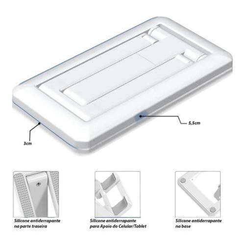 Suporte de Mesa para Celular Com esse Suporte Retrátil você pode assistir as receitas enquanto cozinha ou assistir series de TV enquanto toma banho, é o seu melhor parceiro e uma das ferramentas que você precisa terExtremamente fácil de Guardar pois é dobrável, você pode dobrar o suporte após o uso, diminuir seu tamanho e colocá-lo em seu bolso, bolsa ou mala para levar a qualquer lugar.Possui almofadas de silicone cobertas e base antiderrapante que protegem seus dispositivos de arranhões e deslizamentos, toque facilmente na tela sem se preocupar com o telefone escorregar ou cair.Especificações:- Não cobre as Legendas de filmes, series e jogos-quatro almofadas de silicone na parte de base que toca a mesa- Excelente desempenho - Orifício inferior para carregar o telefone- Compatível com dispositivos de 4 a 10 polegadas- Você pode usar o celular verticalmente e horizontalmente- Facilmente dobre e desdobre o suporte- Ajustamento da Barra do Suporte 90- Antiderrapante, não arranha o celular- Altura 13cm- Comprimento 6.5cm- Largura 2.5cm- Peso: 179g- Cor: BRANCA Marca: Base Importados