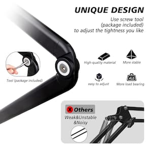 Você ainda está usando um braço de microfone que mantém o microfone pendurado? Você ainda está preocupado com o ruído quando move o microfone boom? Sua mesa ainda está coberta com linhas bagunçadas? Você ainda está segurando o microfone na mão ou seu espaço de trabalho ainda ocupado por uma mesa de suporte de microfone? Venha comprar um conjunto de suporte de microfone atualizado! Compatível com a maioria dos microfones - HyperX QuadCast, SoloCast, Blue Yeti, Shure MV7, Shure SM7B, Rode e etc. O braço de metal resistente suporta microfone de até 1,8 kg, sem queda de microfone. Braço de microfone flexível ajustável para quadcast hyperx, 5 pontos de pivô oferecem rotação de 180° a 360°. O suporte de microfone tem canal de gerenciamento de cabos oculto, mantém sua mesa arrumada. Braço de lança para grampo de montagem de mesa HyperX QuadCast com almofada de silicone, mais estável e não danificará sua mesa. A embalagem inclui: 1 braço de metal para microfone. 1 braçadeira de microfone. 1 adaptador de 0,9 a 1,5 cm (já montado). 4 clipes de cabo. 2 chaves de fenda. 1 x manual do usuário (idioma português não garantido). Observação: microfone não incluído. - Compatibilidade perfeita – Suporte de microfone com adaptador padrão de 0,9 a 1,5 cm, compatível com a maioria dos microfones padrão - HyperX QuadCast, SoloCast, Blue Yeti, Shure MV7, Shure MV7X, Shure SM7B, Rode e outros microfones. - Suporte de microfone de metal estável – Design premium de todos os tubos e estrutura de metal resistente suporta microfones de até 1,6 kg. Aperto ajustável no ponto de pivô, para que você não precise se preocupar com a queda do microfone. Em comparação com o braço boom de molas expostas, um braço de boom de microfone quadcast hyperx não emite som quando se move. - Braço de microfone flexível – o braço de metal pesado para hyperx quadcast oferece 5 pivôs com ângulo ajustável (180° a 360°), permite que você obtenha facilmente a posição perfeita que deseja. Ideal para podcasts, streaming, transmissão, transmissão ao vivo e outras gravações de voz. - Design atualizado – este suporte de microfone hyperx quadcast oferece um canal de gerenciamento de cabos oculto, fácil de esconder seu cabo xlr ou USB, libera mais espaço em sua mesa. O grampo de alta qualidade tem uma almofada de silicone, não danifica sua mesa. E o grampo tem uma área de contato maior com a mesa, de modo que o suporte do microfone não é fácil de sacudir. - O pacote inclui: 1 suporte de metal para microfone, 1 grampo de microfone, 1 adaptador de 3/20.3 cm a 5/20.3 cm (já montado), 4 clipes de cabo, 2 chaves de fenda, 1 manual do usuário. Fácil de instalar o seu microfone hyperx no braço do microfone. Se você tiver alguma dúvida, sinta-se à vontade para entrar em contato conosco, forneceremos orientação de uso e serviços de substituição gratuitos.