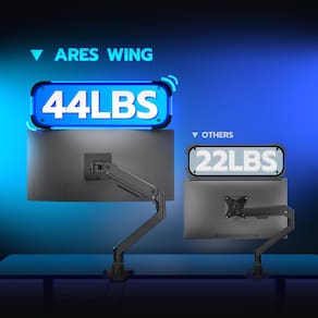 O suporte para monitor de computador ARES WING foi projetado com uma estrutura robusta e um mecanismo confiável de mola a gás. Ele pode suportar com segurança telas planas e curvas ultra-largas de até 44 libras e 17 “a 49". Seus ajustes flexíveis permitem encontrar facilmente os ângulos e posições de visão preferidos. Este braço de monitor de mesa combina resistência e estilo para elevar o espaço de trabalho. A placa VESA de liberação rápida e a base de instalação na parte superior aprimoram sua experiência de uso. A base inteligente aprimora a funcionalidade com portas USB-A e USB-C convenientes, tornando-a uma escolha elegante e eficiente para seu espaço de trabalho. -?Suporta monitores de até 49" e 44 libras?O braço de monitor único ARES WING tem uma estrutura de inclinação otimizada e oferece excelente capacidade de suporte de peso para telas ultra amplas, incluindo a maioria dos populares monitores de computador planos e curvos ultra-largos de 49". Com uma capacidade máxima de peso de 44 libras, ele pode suportar com segurança um monitor de 17 “a 49" e é compatível com VESA 100x100 e 75x75mm. Se o monitor não tiver um orifício VESA, você precisará preparar um adaptador de montagem VESA. -?Amplitude total de movimento?Este braço de montagem em mesa para monitor apresenta excelente flexibilidade e ajuste. Ele oferece uma inclinação de +50° a -20°, rotação de 180°, ajuste de rotação de 360°, uma faixa de altura ajustável de 8,7" a 18,7" e uma extensão máxima do braço de 22,4". Você pode personalizar uma postura ergonômica ideal para reduzir a tensão no pescoço e nas costas e proporcionar um momento de entretenimento mais saudável. -?Base inteligente com portas USB A/C?Para um ambiente de trabalho e de jogo mais organizado, esse braço de monitor ultralargo resolve o problema do caos de cabos e libera um espaço precioso no desktop. Com portas USB 3.0 integradas, ele permite carregar facilmente seus smartphones, equipamentos de jogos e transferência de dados. Ao recuperar mais de 80% da área de seu desktop, ele oferece mais espaço para seus gadgets e decoração exclusivos. -?Construído para durar?É um prático braço para monitor de computador feito de aço e alumínio de alta qualidade. A mola a gás interna passou por mais de 20.000 testes de fadiga para garantir que o braço seja forte e durável. Isso significa que você pode usá-lo com confiança, sem se preocupar com problemas. -?Instalação fácil e rápida?Nosso suporte para monitor de mesa oferece duas opções de montagem: suporte com braçadeira C (para mesas de 0,5 “a 1,8") e suporte com ilhó (para mesas de 0,5 “-2"), ambos muito simples. Sua fácil instalação na parte superior elimina a necessidade de ficar embaixo das mesas, e o design da placa VESA removível facilita o processo de instalação do monitor.