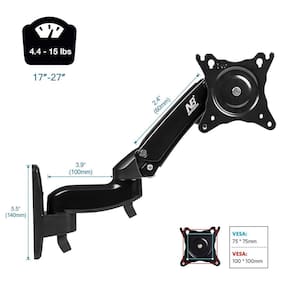 North Bayou Suporte de parede com movimento articular giratório completo para monitor TV de 17- 27 polegadas com mola de gás - Suporte de parede ergonômico para monitor de 17 a 35 polegadas, projetado para suportar uma carga de 3 a 12 kg, serve para VESA 75 x 75 mm ou 100 x 100 mm, instalação simples e operação sem esforço, montado na parede, oferecendo uma opção mais estável e segura do que suportes de mesa. - Economia de espaço montado na parede, segure sua tela com firmeza, economize mais espaço valioso em sua estação de trabalho. Cria um efeito flutuante suspenso de acordo com sua necessidade diária, vem com as peças de gerenciamento de cabos, mantendo seu espaço de trabalho organizado e organizado. - Ajustes de movimento completos, oferece ampla variedade de movimentos. Ângulos de inclinação +85° a -30° Ângulos giratórios ± 90°, rotação da tela 360°, ampla variedade de ajustes de altura para diferentes necessidades. - Faixa de elevação do monitor 7,6" (195 mm), distância mínima da parede apenas 3,94" (100 mm) e extensão máxima de até 445 mm. Melhore sua experiência de visualização e jogo. - Guia de instalação: Em primeiro lugar, instale o produto na parede, em segundo lugar, monte seu monitor no produto, depois disso, empurre o braço para baixo, será fácil ajustar este parafuso de tensão de acordo. (Por favor, não ajuste o parafuso de tensão sem o monitor nele)