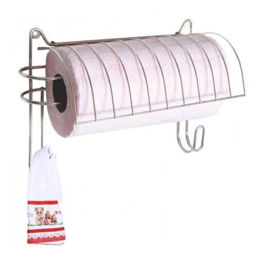 01 Suporte de Papel Toalha de Parede com Ganchos 10x28cm