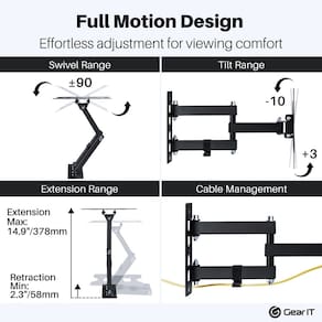 - [ECONOMIA DE ESPAÇO] Com uma TV de baixo perfil, o suporte de parede pode ser colocado até 2,2 polegadas encostado na parede e pode ser puxado até 14,9 polegadas para facilitar o acesso à parte traseira da TV.
