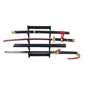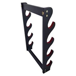 Suporte de Parede para 4 Katana Horizontal Este produto feito de madeira MDF pintado para um acabamento bonito, possui veludo onde apoiar a katana para evitar arranhões vem com gancho atrás para pendurar onde preferir.