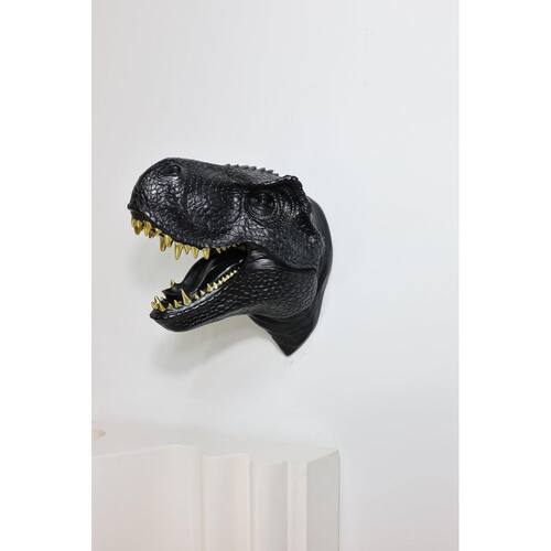 Escultura de cabeça de dinossauro Hi-Line Gift Ltd Ornamento montado na parede em cor preta