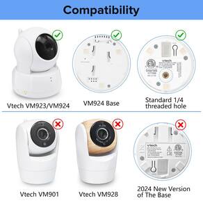 Suporte de parede ajustável para monitor de bebê compatível com monitor de vídeo VTech VM923/VM924/VM919HD, ângulo de visão perfeito sem ferramentas - Compatibilidade: este suporte para monitor de bebê foi projetado exclusivamente para Vtech VM923/VM924/VM919HD, também serve para outras câmeras para bebês com orifício de rosca padrão de 1/4 (NOTA: verifique o modelo da câmera antes de fazer seu pedido) - Ângulo de visão perfeito: ajustável em 360 graus o ângulo permite que você posicione a câmera do bebê de forma flexível, sempre fique de olho no seu bebê dormindo - Duas formas de instalação: nosso suporte para câmera para bebês é fácil de instalar com parafusos ou fita adesiva incluídos, basta escolher o método de sua preferência. A fita adesiva garante uma fixação segura para sua câmera - Mais segura: feita de material premium, este suporte permite uma instalação de longa distância, mantendo o monitor a uma distância segura do berço e, portanto, mais seguro para seu bebê - Lista de pacotes: 1 suporte de parede para monitor de bebê, 1 conector adaptador, 3 parafusos de parede, 3 âncoras de parede, 1 manual