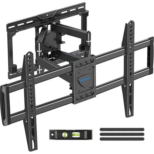 - Suporte de parede Full Motion TV: o suporte de parede articulado inclina a TV para cima e para baixo 13° e gira a TV para a esquerda e para a direita em 45° para posicionar sua TV exatamente onde você deseja. O suporte de parede para TV de 65 polegadas se estende por 16,3" para aproximar sua TV para uma visualização mais confortável e se retrai 2,4" para movimentos suaves e economia de espaço.