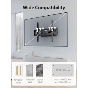 - Suporte universal para TV de movimento completo - Nosso suporte de parede para TV serve para a maioria das TVs de 94.0 cm-190.5 cm e pinos de madeira de 40.6 cm, paredes de tijolo e concreto (âncoras incluídas). Compatível com padrão VESA de 200 x 100 mm a 600 x 400 mm. Verifique o padrão VESA, peso (até 50 kg), tamanho da sua TV antes de comprar.