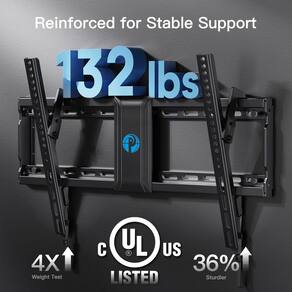Construído para oferecer estabilidade: projetado com aço reforçado laminado a frio, nosso suporte de parede para TV apresenta uma capacidade de peso notável de 132 libras. O suporte de montagem na parede para TV foi testado para suportar 4 vezes a capacidade de peso nominal, garantindo a máxima tranquilidade para seu equipamento.