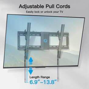 Cabos de tração ajustáveis: o suporte de parede inclinável da TV foi projetado com convenientes mecanismos de travamento por cabo de tração que permitem que você bloqueie ou solte facilmente a TV da placa de parede. O comprimento ajustável de 6,9 ? a 13,8 ? facilita esconder os cabos atrás da TV e, ao mesmo tempo, torná-los acessíveis.