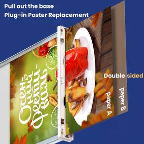 - [Fácil montagem e troca de pôsteres] Insira 2 pôsteres A4 impressos na parte inferior da caixa de luz (distribuídos nos dois lados da folha de luz), cubra a base magnética espessa, carregue a tela A4 e, em seguida, ela pode ser acesa, todo o processo leva 2 minutos. Substituir pôsteres é tão fácil quanto montar