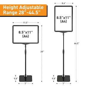 Ajuste de altura: a altura do suporte de sinal ajustável é entre 68,5 cm e 99,1 cm, permitindo que você personalize a altura da tela para atender a vários ambientes e necessidades de visibilidade.