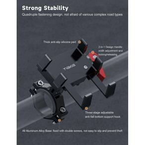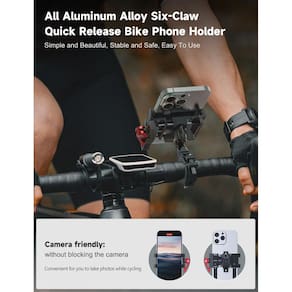 Características do produto: Este suporte de telefone usa um mecanismo excêntrico de fixação de câmera para prender o telefone. Em comparação com o suporte de telefone da estrutura tradicional, sua estrutura é mais simples, mais firme e confiável, a operação também é mais fácil e rápida. 2. Adota uma estrutura de 6 ganchos em forma de U, que prende ambos os lados do telefone e segura a parte inferior do telefone. A fixação é firme e não bloqueia a câmera e os botões do telefone. 3. O suporte é conectado à base através de uma bola universal, que pode girar 360°. A porca de bloqueio adota uma estrutura em forma, o que é mais conveniente de usar. É fácil travar a bola universal para manter o suporte de telefone em um ângulo fixo. 4. O suporte e a base são feitos de liga de alumínio, que é resistente e durável, e também tem boa resistência (não se preocupe com bandejas ultravioleta). É muito melhor do que material plástico ABS. 5. Tem melhor compatibilidade, adequado para telefones de mais tamanhos. Também é equipado com quatro arruelas de nylon padrão diferentes, adequadas para mais tipos de bicicletas, motocicletas ou veículos elétricos. - Material de liga de alumínio 6063: o corpo principal e a base deste suporte de telefone de motocicleta são feitos de liga de alumínio 6063, usinada CNC; os acessórios de parafuso são feitos de aço inoxidável, que é resistente e durável. Em comparação com suportes de celular de bicicleta de plástico e silicone, é mais resistente e durável, tem bom desempenho antienvelhecimento e vida útil mais longa. - Câmera sem bloco, tela e rotação de 360°: o suporte de telefone de motocicleta adota uma estrutura de 6 ganchos em forma de U, que prende ambos os lados do telefone e fixa a parte inferior do telefone. Não bloqueia as câmeras frontal e traseira ou telas de borda tanto quanto outras motocicletas de suporte de telefone no guidão. Em comparação com o suporte de telefone Tiakia para guidão de bicicleta é conveniente para fotografar ou identificar o rosto enquanto pedala. O recurso de junta universal de forma esférica de 360° facilita o ajuste do ângulo de visualização para uma visão ideal, facilitando atender chamadas, reproduzir música, GPS enquanto pedala. - Bloqueio e liberação com uma mão: sem necessidade de ferramentas, com um botão de liberação rápida no lado direito, este suporte de telefone para motocicleta leva apenas 1 segundo para travar ou soltar o telefone. Em comparação com o suporte de celular de motocicleta tradicional, este suporte de celular de bicicleta de alumínio economiza 90% do tempo. A porca de bloqueio que conecta o corpo principal e a base tem uma estrutura em forma de cruz, que é mais fácil de usar. É fácil travar a bola universal para manter o suporte do celular da bicicleta em um ângulo fixo. - Estrutura requintada, fácil de instalar e usar: o gancho inferior antiqueda ajustável de três estágios do suporte de celular para bicicleta tem três ajustes de comprimento, compatível com diferentes comprimentos de telefones celulares, o que pode evitar que os botões laterais do telefone e a câmera sejam bloqueados; a base de alumínio é fixada com parafusos duplos, o que torna o suporte difícil de deslizar no guidão e anti-roubo. O pacote vem com 1 chave Allen e 1 chave de fenda, fácil de instalar. - Ampla compatibilidade: suporte universal de telefone de bicicleta, adequado para smartphones de 4,5 a 7 polegadas, adequado para telefones com largura de 62 a 90 mm e espessura < 14 mm. Vem com 4 almofadas de braçadeira, que podem ser ajustadas para corresponder a diferentes tamanhos de guidão, adequadas para bicicletas/bicicletas de montanha/bicicletas de estrada/bicicletas downhill/motocicletas/bicicletas elétricas com um diâmetro de guidão de 22,2 a 35 mm.