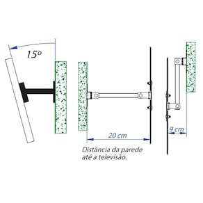 Distância máxima da parede de 20 cm e distância mínima de 9 cm.