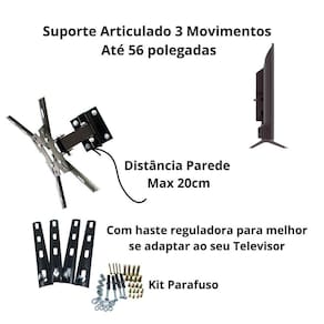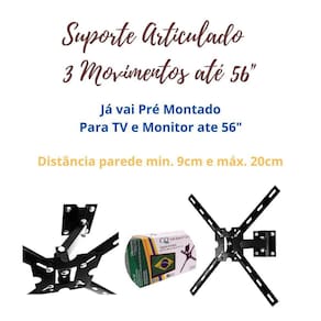 Conteúdo da embalagem: 1 suporte articulado com 3 movimentos qs-56 classic e 1 kit de instalação.