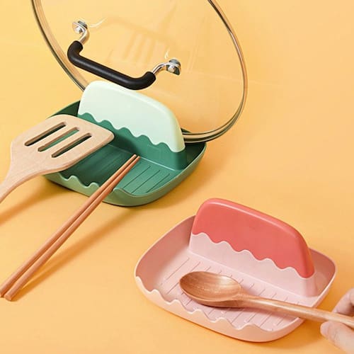 Características PrincipaisHigiene e Organização: A principal função do suporte é evitar que utensílios sujos (com molhos, cremes, etc.) entrem em contato direto com a bancada da cozinha ou a pia. Isso ajuda a manter a área de preparo limpa, organizada e livre de contaminação cruzada.