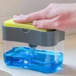 Dispenser detergente 2 em 1 com esponja para limpeza