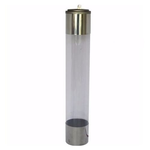 Suporte Dispenser De Copos De Chopp 300ml Cristal Inox Descrição: - Dispenser cristal inox para copos de chopp; - Corpo em plastico transparente, com extremidades em aço inox; - Sob medida para copos de chopp de 300ml; - Super simples de abastecer, basta tirar a tampa, adicionar os copos e colocar a tampa; - Muito em lojas, escritorios, e ambientes diversos. Medidas: - Altura total: 54cm; - Diâmetro da entrada dos copos: 8,4cm.