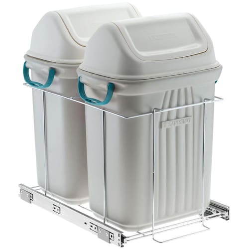 Para manter sua casa sempre limpa e organizada, as lixeiras são indispensáveis. Este suporte duplo com duas lixeiras vai cumprir com este papel. De plástico resistente, estrutura em aço cromado e tampas basculantes, une praticidade, organização e limpeza em um só produto. Cada lixeira tem capacidade de 19 litros, e é perfeita para a sua cozinha. Para a limpeza basta retirar as lixeiras, pois são removíveis da estrutura.