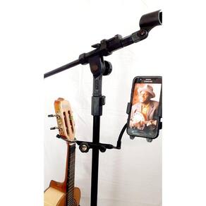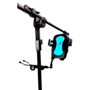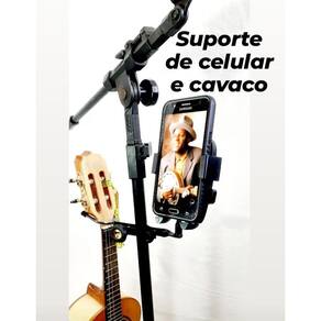 Suporte Duplo Celular E Cavaco/BanjoSuporte duplo de celular e cavaco, todo fabricado em metal de alta resistência, pintura epóxi e de simples instalação desenvolvido por JC suportes para acoplar em pedestais de microfone padrão, compacto medindo somente 22x9x9 cm e pesando 244g na cor preto fosco, sendo transportado facilmente, pode ser também para banjo, ukulele, bandolim ou violino que vai facilitar muito nos seus shows festas e rodas de samba, conta também com um suporte para o seu celular que tem uma haste flexível de fácil manipulação, acompanha manual de instruções.Ficha técnica- Cor: Ciano Marca: Jc Suportes