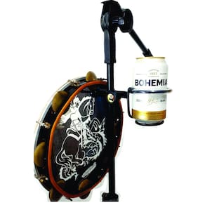Suporte duplo de pandeiro e copo, todo fabricado em metal de alta resistência, pintura epóxi e de simples instalação desenvolvido por JC suportes para ser acoplado em pedestais de microfone padrão, compacto medindo somente 26x9x7 cm e pesando 220g na cor preta, sendo transportado facilmente, contém um recipiente para colocar seu copo, garrafinha de água, taça de bebidas etc. Vai facilitar muito nos seus shows, festas e rodas de samba.