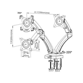 Suporte Duplo Mesa Articulado Pistão A Gas -Monitor- F160Adequado para a maioria dos displays de 17 -30.Baseado no conceito de design ergonômico, proporciona-lhe um estilo de vida mais saudável. Este suporte de visor duplo de elevador de cilindro do tipo desktop é baseado no projeto da mola a gás, permitindo que você mova a tela para qualquer direção e altura desejada.Produzido em aço carbono, com detalhes de acabamento para passagem dos fios em plastico.O produto acompanha kit de instalação completo. ¦ adequado para 17 -30 visor¦ suporta os orifícios VESA 75x75, 100x100 mm¦ Ângulo de rotação: 360 °¦ Ângulo de inclinação ajustável: + 35 ° a -50 °¦ Cor: preto Peso para cada tela: 2 a 9 kg Ean: 6943223110405