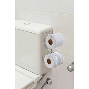 A papeleira para caixa acoplada é uma ótima opção para não furar a parede, basta encaixar na caixa acoplada que já está pronta para o uso. Este modelo possui capacidade para acomodar 2 rolos de papel higiênico.