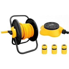 Kit composto de 1 enrolador de mangueira sem rodas Vonder + 30 m Mangueira para jardim, superflexível, 1/2 + 3 Engates rápido 1/2 passagem livre Vonder + 1 Irrigador plástico múltiplo IM 601 VONDER - Enrolador de mangueira sem rodas Vonder Conteúdo da Embalagem: 1 Suporte para mangueira, acompanha: 2 conectores 1/2 fêmea , 1 conector principal macho . Possui corpo em plástico ABS, com manivela para acionamento, base e alça metálicas tubulares para transporte/apoio. Acompanha conectores macho para engate rápido 1/2. Fácil montagem, não necessita de ferramentas. Indicado para enrolamento de até 30 m de mangueira de jardim 1/2 não acompanha mangueira . Garantia legal: 90 dias DETALHES TÉCNICOS Capacidade do suporte enrolador para mangueira:Até 30 m Cor do suporte enrolador para mangueira:Amarelo e preto Material do suporte enrolador para mangueira:Plástico ABS Massa aproximada peso :1,67 kg - Mangueira para jardim, superflexível, 1/2 Vonder Conteúdo da Embalagem: 1 Rolo de mangueira 30 m. Possui PVC resistente aos raios ultravioleta. Indicada para condução de água fria em limpeza e irrigação em jardim. NÃO é trançada. Garantia legal: 90 dias + Garantia contratual: 3 meses - irrigador plástico múltiplo IM 601 VONDER Conteúdo da Embalagem: 1 Irrigador e 1 conector para engate rápido. Fabricado em plástico ABS de alta resistência. Possui jatos múltiplos, 8 posições de ajustes jato setorial, jato triangular, jato retangular, jato semi flat, jato semi círculo, jato quadrado, jato círculo e jato ducha spray . DETALHES TÉCNICOS Tipo de irrigador para jardim: Múltiplo Material: Plástico ABS Engate: 3/4 Diâmetro de alcance na pressão máxima: 4,6 metros. Quando utilizado no jato triangular o alcance é maior: 14,4 metros a 16,6 metros Pressão máxima de trabalho: 4 bar - 58 lbf/pol Massa aproximada peso : 0,227 kg Indicado para irrigações em geral. Garantia legal: 90 dias