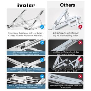 COMPATIBILIDADE O suporte para laptop e tablet suporta a maioria dos dispositivos de 25 a 40cm Macbook, ThinkPad, Surface, Chromebook, iPad Pro, etc. PROJETO AJUSTÁVEL DE MÚLTIPLOS ÂNGULOS O suporte para laptop e tablet oferece altura ajustável de 6 velocidades, ajuste para um ângulo de operação confortável e altura com base em sua necessidade real. E o design ergonômico facilita a observação e a digitação, aliviando dores no pescoço, ombros e coluna. COMPACTO e PORTÁTIL Design dobrável portátil criativo, o suporte para laptop pode ser dobrado no tamanho de 24 x 4cm e com a bolsa de zenamento portátil para facilitar o transporte. OBRA EXQUISITA Fabricado em liga de alumínio anodizado, com processos de jato de areia e escovado. Com tapete de silicone antiderrapante, evite o risco de arranhões em seus dispositivos e colocação estável Marca: Não Informado