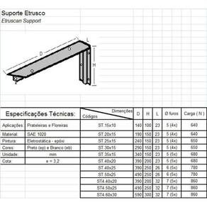 Suporte etrusco branco 20x15 65kg - Risf Acabamento em branco ou preto verificar disponibilidade em estoque antes de finalizar a compra Material: ferro aço SAE 1020 Designer lindo, pintura epoxi preta ou branca Tamanho: 15, 20, 25, 30, 35, 40 e 50 cm tamanhos que trabalhamos esse anúncio se refere a medida descrita no título