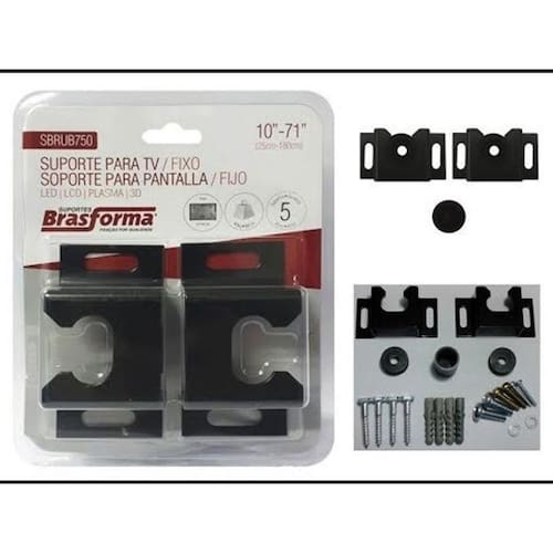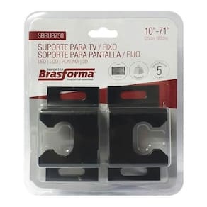 Se você deseja instalar sua TV na parede, o Suporte Universal Brasforma é a solução ideal para os ambientes da sua casa. Proporciona uma visão frontal, é fácil de instalar e indicado para TVs de 10 a 71 polegadas. Diferenciais Fácil instalação Trava de segurança Parafusos para instalação em painel de madeira Conteúdo da Embalagem 1 Suporte para tv Kit de Parafusos 1 Manual de instruções. Observações: Verifique se a superfície de instalação apresenta resistência suficiente para uma instalação segura. Fique atento a carga máxima indicada para o suporte. Aconselhamos que a instalação seja realizada por um profissional da área. Verifique se a furação de sua TV é compatível com o suporte. Ean: 7908709588825
