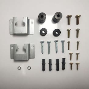 Conteúdo da embalagem: 1 Par de suportes de ferro, 1 Par Base inferior de plástico com fixação adesiva, 2 Parafusos M4x25, 2 Parafusos M6x25, 2 Parafusos M8x25, 4 Buchas 8mm, 4 Parafusos para Painel, 2 Arruelas, 4 Parafusos 1/4x40