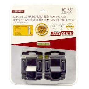 Suporte Fixo Universal Tv Ultra Slim 10 A 85 O Suporte fixo para TV Universal Ultra Slim SBRUB-859 foi desenvolvido pela Brasforma garantindo todos os requisitos de qualidade e resistência, ideal para fixar á sua Smart TV 4k da Samsung, LG, Sony entre outros, tanto de LED, LCD ou Plasma na parede ou no Painel de madeira, compatível com todas as marcas e modelos de 10 a 85 polegadas. Oferece engate rápido, fácil organização nos cabos e conectores e ainda possui trava de segurança. Esse modelo é Ultra Slim, tornando o ambiente muito mais elegante. Ferramentas necessárias para instalação: - Broca - Furadeira - Chave Philips - Caneta - Chave de Boca