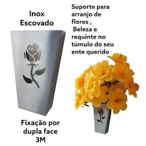 Suporte Floreira Decorativa Para túmulo E Lápide Floreira túmulo Cemiterio Suporte para arranjo de flores . Ideal para ser em sepultura . principalmente em túmulos de gaveta Produto feito em inox escovado , proporcionando beleza e alta durabilidade. Tamanho ideal para arranjos grandes . Suporte fixado com fita dupla face 3m. Fácil instalação, e furos na parte inferior para não acumulação de água . Dimensão. 20 cm de comprimento. 12 cm de largura Nossa empresa tem uma linha diversificadas de suportes em geral , proporcionando facilidade e comodidade para o dia a dia dos nossos clientes . Marca: Não Informado
