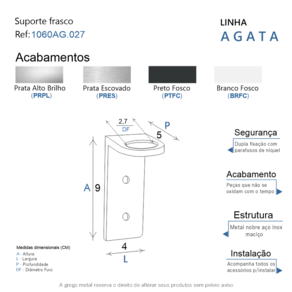 • Pode ser instalado em parede, azulejo e porcelanato.