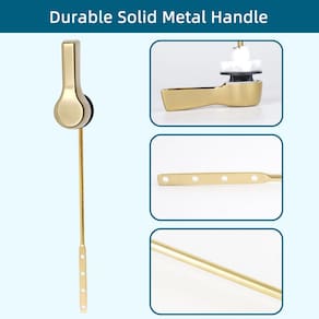 Hygie Rinse Substituição do cabo do vaso sanitário - montagem frontal universal, alavanca de vaso sanitário dourado escovado com corrente de melindrosa de aço inoxidável, kit de reparo de vaso sanitário - Ajuste de montagem frontal: Construção com design de montagem frontal para quase todos os tanques de banheiros da marca, como compatível com Kohler/TOTO/American Standard/Mansfield/Gerber. Observe que não é adequado para tanque de vaso sanitário de montagem lateral - Cabo de metal: Feito de uma alça de latão sólido e chave inglesa banhada a ouro escovado, que durará por uma vida longa e não enferruja, o acabamento fino do cabo se encaixa bem na maioria dos acessórios de banheiro e estilos de decoração - Incluído na embalagem: 1 peça de suporte frontal com alça embutida + 1 peça de correntes de aço inoxidável, uma boa peça de vaso sanitário para substituir seu kit de tanque de vaso sanitário antigo, também pode evitar descarga acidental - Fácil de instalar: a alavanca do tanque do vaso sanitário não é muito grande e você pode consertá-la manualmente, sem qualquer ferramenta, levando minutos - Tamanho da alavanca de descarga do vaso sanitário: Largura da chave: cerca de 7,3 cm/2,87 pol; Comprimento da alavanca: cerca de 21 cm/8,26 pol; Comprimento das correntes de melindrosa incluídas: 35,3 cm/13,9 pol, ajustável para todos os tanques de vaso sanitário